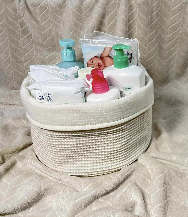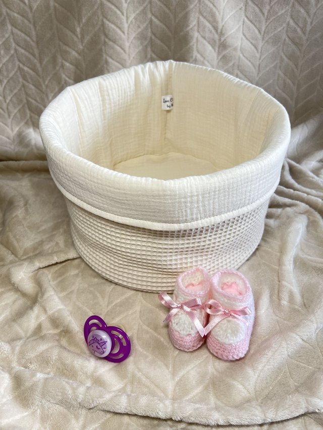 Panier de rangement, parfait pour la chambre de bébé à poser sur la table à langer, accueillera avec tendresse couches, lingettes, produits d'hygiènes ou bien encore les jouets, livres, doudous ... et tout ce que vous voulez!